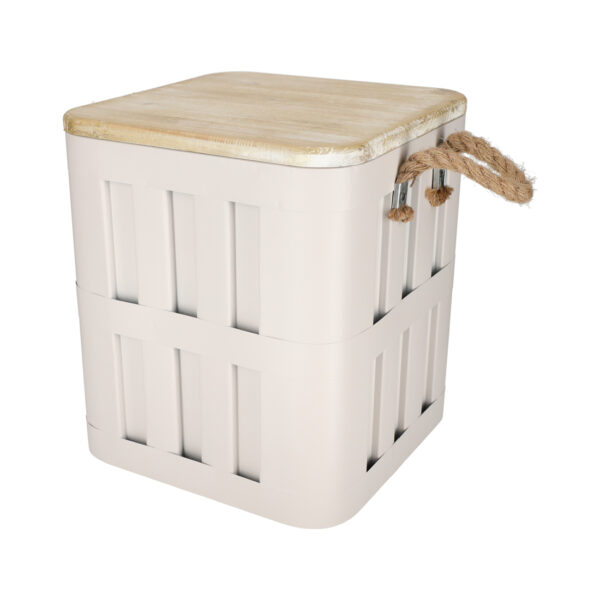 Dé opbergbox voor alles! Deze stoere box is gemaakt van metaal en heeft een deksel van hout. Met een maximaal draagvermogen van 70 kg biedt hij voldoende stevigheid om te gebruiken als zitplaats of als handige opbergplek voor diverse spullen tot 25 kg. Dankzij de hengsels aan de zijkant is de box eenvoudig te verplaatsen.