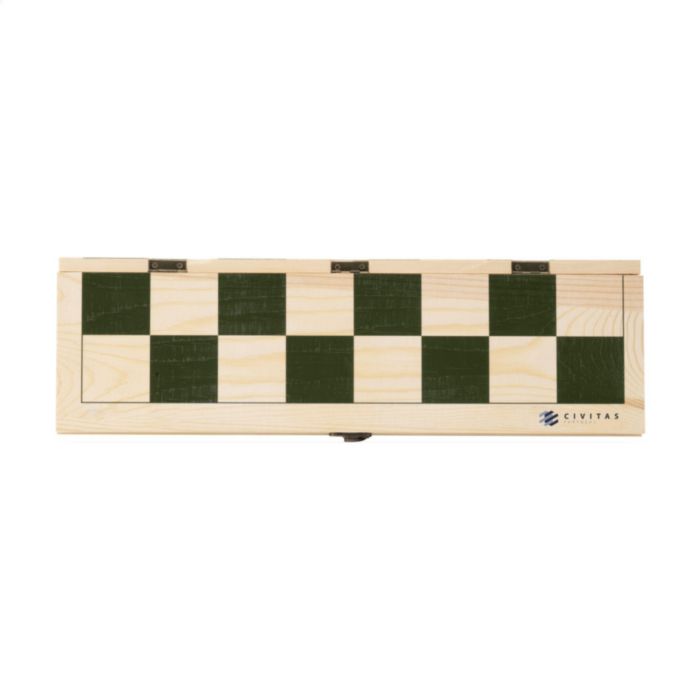 Rackpack Gamebox Chess: een wijnkist en schaakspel in één. Een cadeauverpakking voor één fles wijn. Klap de box open voor een compleet bordspel. Wordt geleverd met houten schaakstukken in een stevige, canvas opbergzak. Een compleet geschenk voor een geslaagde spelletjesavond. Rackpack: een wijngeschenkkist van FSC 100% gecertificeerd hout met een nieuw tweede leven! • geschikt voor één fles wijn • dennenhout • wijn niet inbegrepen.